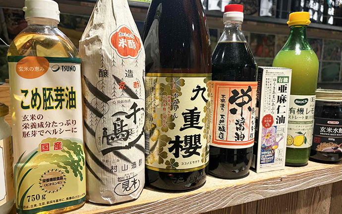 玄米水飴、米粉、おから粉、アマニ油、米胚芽油を代替使用。味噌、醤油、酢、ソース、塩、すべてこだわりです。