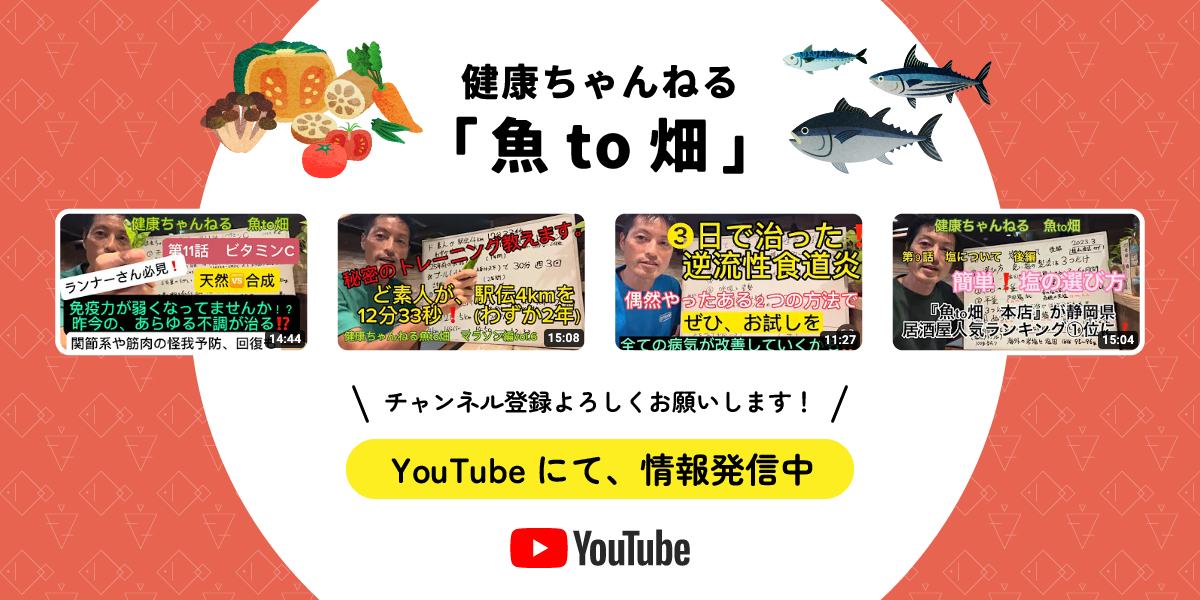 当店のお料理は、砂糖不使用・グルテンフリー・無添加です。油や調味料にこだわり、揚げ油は、米胚芽油100%となっております。魚は、毎朝由比漁港の朝せりに出向き、仕入れに工夫して、身体に良いものばかりを使いながら、お手軽なお値段で提供しています。食生活改善で健康な世の中を。